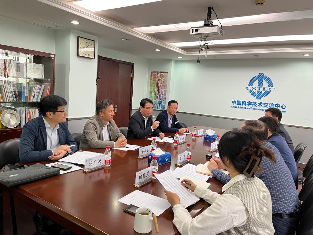 10月13日上午,学院党委书记简祖平,党委副书记、院长潘永圣等一行4人走访中国科学技术交流中心,中心主任高翔、四级职员富贵、亚非处处长颜晓虹以及亚非处项目主管田晓翌等出席会议并接待。
