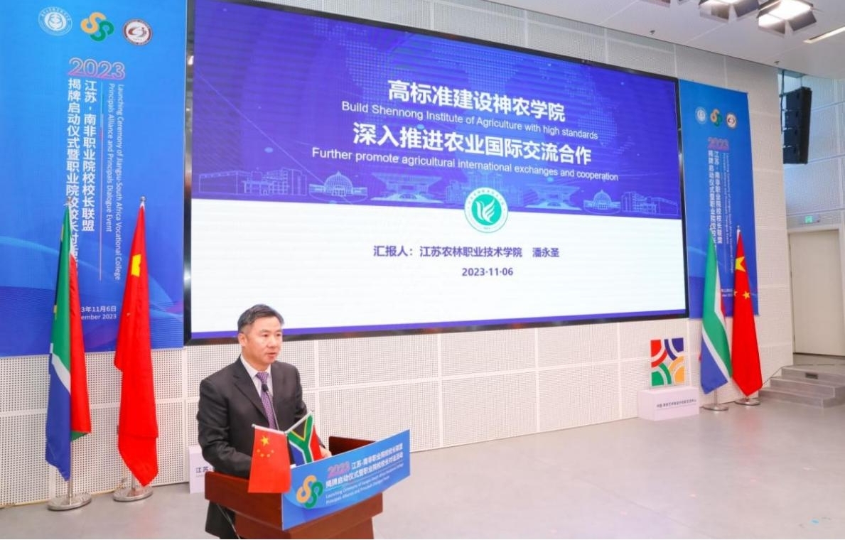 伟德官网党委副书记、院长潘永圣应邀出席揭牌和授牌仪式,并作“高标准建设神农学院,深入推进农业国际交流合作”主旨报告,全方位介绍了作为农业职业院校助力中国农业“走出去”企业海外发展以及服务国家“一带一路”倡议的有效举措,并提出希望通过此次活动,有更多的南非院校及企业能够了解伟德官网,共同建设神农学院,拓展农业技术合作、农业职业教育交流,共同促进农业方面的技术进步,深化中国与南非的友谊。