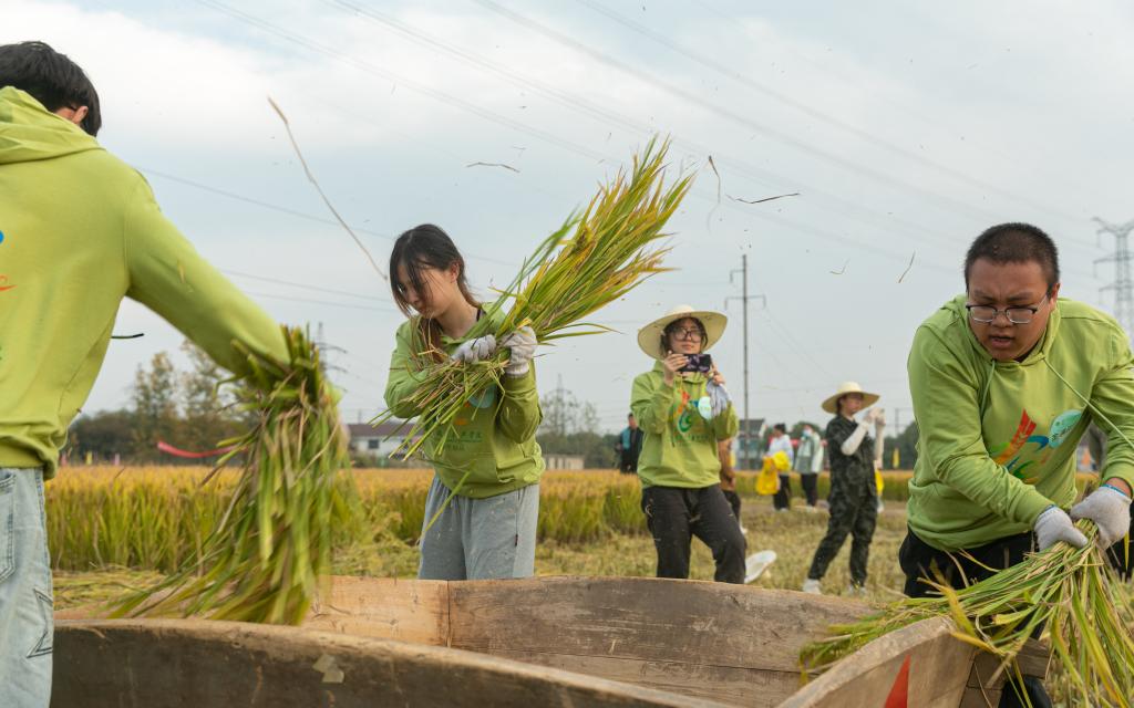 随后,同学们通过稻田技能大比武的形式,在稻田“华山论剑”。同学们开展了割稻比武、脱粒比拼和机收实战三个部分的比拼,体验了一把现代农业收割的全流程。在晒丰收的展示环节,师生们用稻草做编织艺术品、五谷杂粮画、书法作品等,广受好评。最后,同学们品尝了不同品种的大米,并在专业老师的讲解下,认识大米的分类、品种,学习相关知识,巩固劳动教育成果。通过此次活动,同学们不仅体验到了劳动的艰辛,感受到了收获的喜悦,而且提高了劳动实践能力,培养了团队协助精神,锻炼了吃苦耐劳品质。他们表示,将进一步坚守“三农”情怀,以实字当头,干字为先,扛起农业农村现代化的大旗。