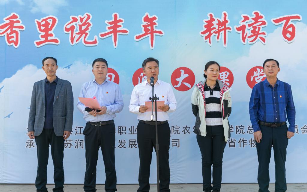 为弘扬农耕文化,厚植“三农”情怀,11月8日,学院90多名师生在江苏镇江新区姚桥镇江苏润果农业发展有限公司,举办了BV伟德官方网站与润果农业“新农人”联合培养启动仪式暨“稻花香里说丰年 耕读百年逐梦行”田间大课堂活动,引导广大青年学生积极投身乡村振兴工作,争做伟大事业的建设者、专业技能的钻研者、敢于追梦的奋斗者。学院党委副书记、院长潘永圣,党委委员、副院长颜志明,江苏润果农业发展有限公司董事长、全国人大代表魏巧出席此次活动。