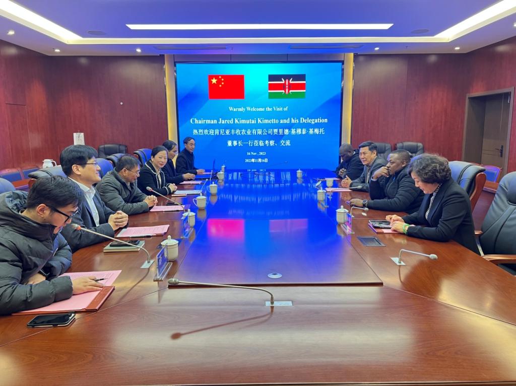 座谈期间,王瑾首先代表学院向Jared Kimutai Kimetto董事长一行表示热烈欢迎,并介绍了学院的办学历史、学科设置、师资力量、人才培养及国际交流工作开展情况。王瑾表示,此前学院一行人员已与Jared Kimutai Kimetto董事长共同在肯尼亚揭牌成立了神农学院,希望在此次实地考察之后,能进一步推动园艺、农机等方面合作项目的落地。农学园艺学院和机电工程学院负责人分别做了专业办学情况介绍。