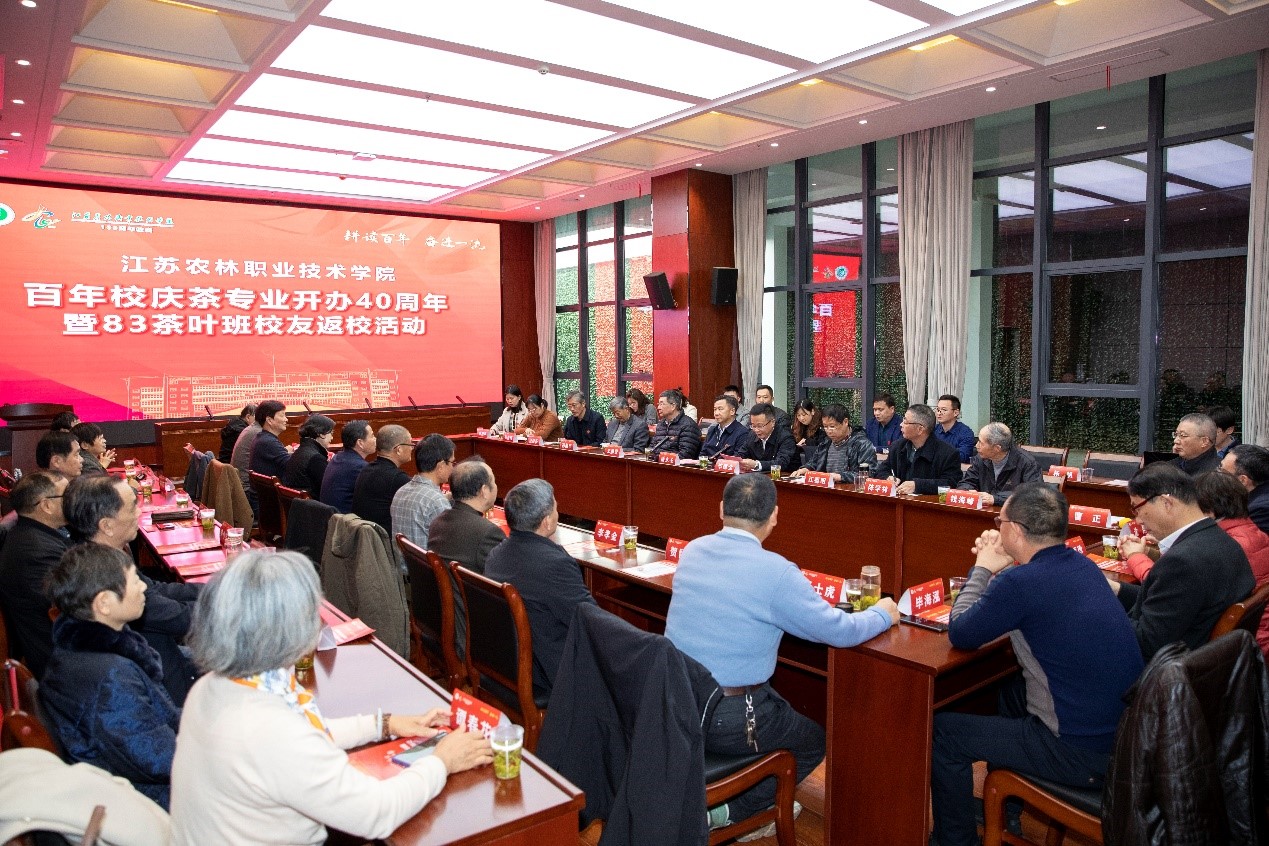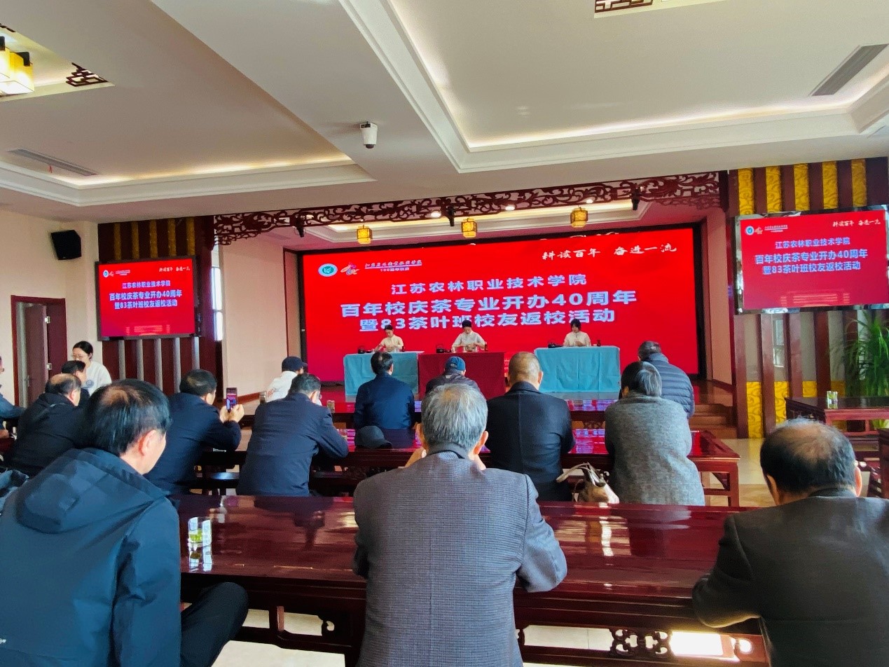 茶与食品科技学院院长曹正以《百年农林赓续前行,不惑茶专业耕耘不辍》为题,介绍了茶专业开办40年来的专业建设、师资队伍、人才培养、科研与社会服务等情况。83茶叶班校友代表刘凯成发言,他深情回忆在校时光,感慨同学情谊无价,感激恩师教诲和母校培养,并表示为母校的快速发展和取得的办学成效而感到骄傲和自豪,将始终关心关注母校发展,祝愿母校事业辉煌,学院越办越好。