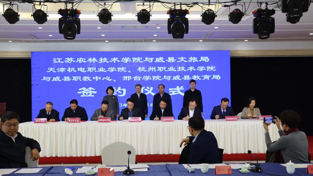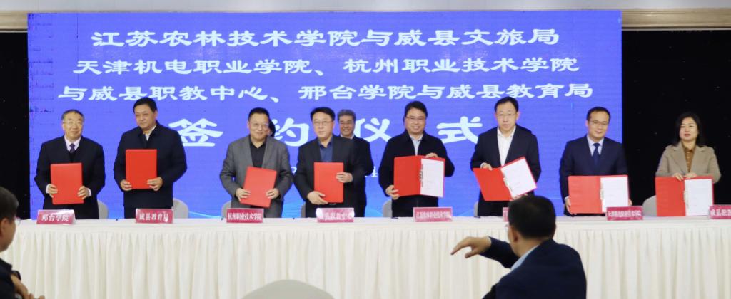 威县为教育部定点帮扶县,为深入做好乡村振兴教育帮扶工作,支持威县旅游产业发展,发挥伟德官网在文旅发展方面的优势,建立高校与区域协同发展机制,本着资源共享、优势互补、合作共赢的原则,经充分酝酿和协商,双方重点围绕文旅产学研合作,实施“百校进威”工程,着力在文化旅游资源利用、文旅产品开发、文旅产业规划等方面进行深度合作,达成合作共识。在教育部副部长吴岩等领导见证下,伟德官网党委书记简祖平与威县文旅局局长侯炳辉签订全面战略合作框架协议。