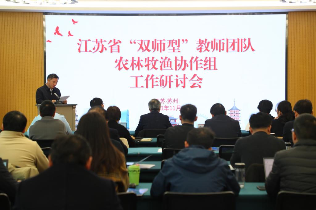 为加快推进江苏省职业院校“双师型”教师队伍建设,推动全省职业院校“双师型”教师团队协作共建和改革创新,农林牧渔协作组工作研讨会和省职业教育“双师型”教师团队协作组工作研讨会于2023年11月28-29日在苏州农业职业技术学院相城培训中心举行。省教育厅教师工作处二级调研员徐萍,江苏省职业教育“双师型”教师团队农林牧渔协作组组长、伟德官网党委副书记、院长潘永圣,苏州农业职业技术学院党委书记傅兵,党委副书记、校长苏士利,扬州市职业大学纪委书记黄华明等9家协作组成员单位、16个教师团队负责人和核心成员参加了研讨会。