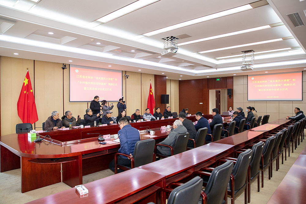 1月9日上午,江苏省老科技工作者协会“亚夫富民大讲堂”和“乡村振兴科技培训基地”揭牌仪式暨江苏省老科技工作者协会BV伟德官方网站分会成立仪式在学院综合楼9楼会议室顺利举行。江苏省老科技工作者协会常务副会长王鲁宁、秘书长刘献理,江苏省农业农村厅离退休干部处处长徐晓青、二级调研员张仕勤、省老科协农业农村厅分会常务副会长兼秘书长沈福林,学院党委书记简祖平等领导和专家出席会议。纪委书记孙俭主持会议。