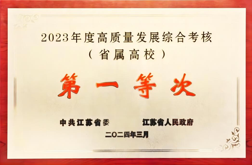 近日,全省2023年度高质量发展总结暨2024年工作推进会议在南京召开。会上通报了江苏省2023年度综合考核结果,伟德官网荣获省属高校高质量发展综合考核第一等次,这是学校连续第五年获此殊荣。