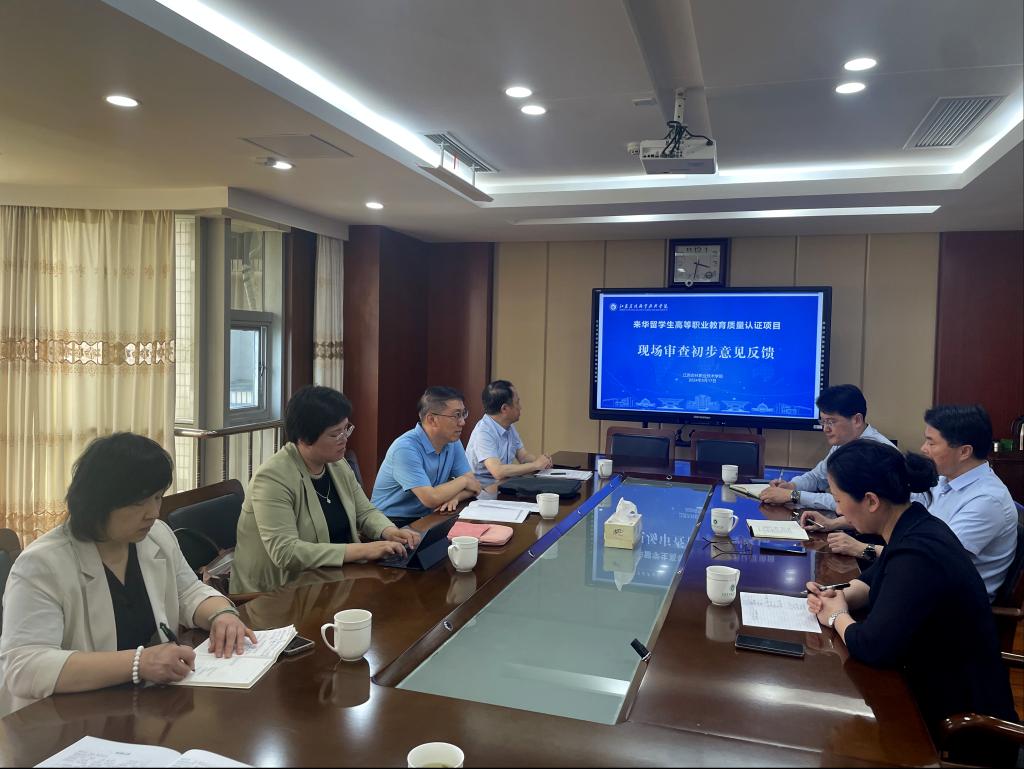 在5月17日的现场审查意见初步反馈会上,专家组反馈了此次认证现场审查的初步意见。专家组认为,学院是中国特色高水平高职学校(A档)建设单位,综合实力强,办学特色明显,在学院党委的领导下,国际化办学思路清晰,学院建有高效的来华留学生管理与服务体系,来华留学生办学专业与“一带一路”沿线国家产业发展高度匹配。学院本着“说好中国话,学好中国文化 ,讲好中国故事,练好专业技能,做好中外文化交流的使者”的“五好”育人准则,培养了一批知华、友华、爱华的来华留学人员。同时,专家组提出建议,学院应进一步统一思想,提升学院留学生工作一盘棋的理念,增强师资队伍建设、加强留学生生源国需求的研究,扩大留学生招生规模、改善留学生住宿环境、加强管理服务水平与中国国情教育及文化教育力度等,全面提升来华留学教育及管理工作水平。