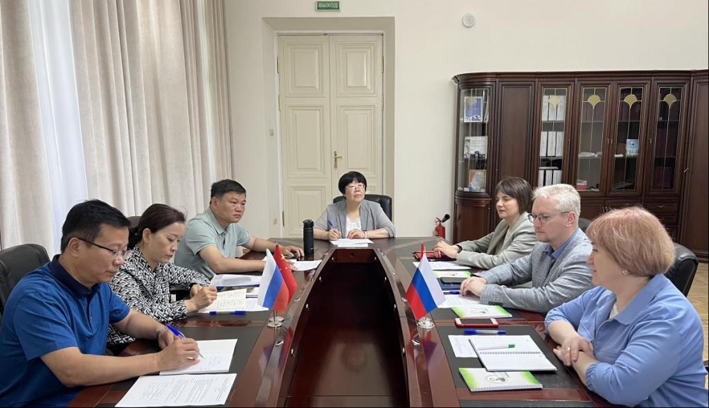 在俄罗斯国立农业大学-莫斯科季米里亚泽夫农业学院,教务副校长Khokhlova,Elena Vasil,evna、学术交流中心主任、国际教育计划部副主任、动物科学和生物学研究所副所长、水利研究所副所长等与代表团进行交流座谈。双方代表分别介绍了本校的基本情况,对开展学生联合培养、暑期培训,互派教师科研交流等合作事项达成意向。