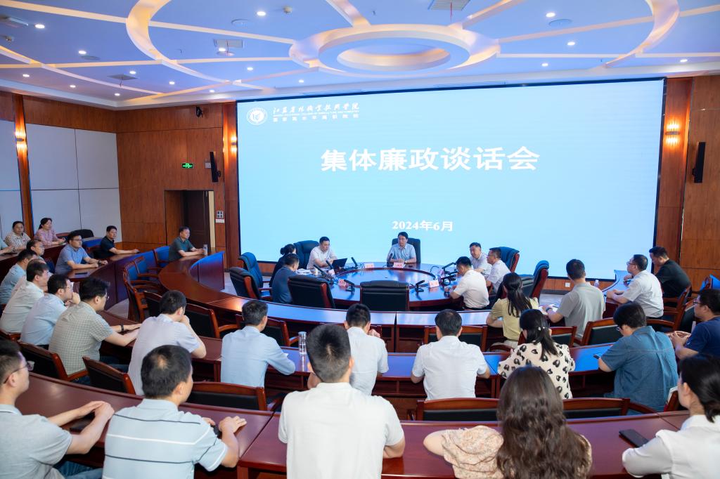 参观结束后,党委书记简祖平对全体中层以上干部开展集体廉政谈话。简祖平指出,案例是最好的教科书,也是最好的清醒剂,他通报了廉洁纪律、师德师风、纠治“四风”三个领域的部分典型违法违纪案例,剖析了这些违纪违法党员干部腐化堕落的心路历程和问题根源。他强调,大家要以案为鉴,把思想摆进去、把境况摆进去、把代价摆进去,以把自己摆进去的心态对照、检视和反思,做到严守防线、慎交朋友、廉洁用权,算好事业账、家庭账、名誉账、经济账、自由账。集体廉政谈话由党委副书记、院长潘永圣同志主持。