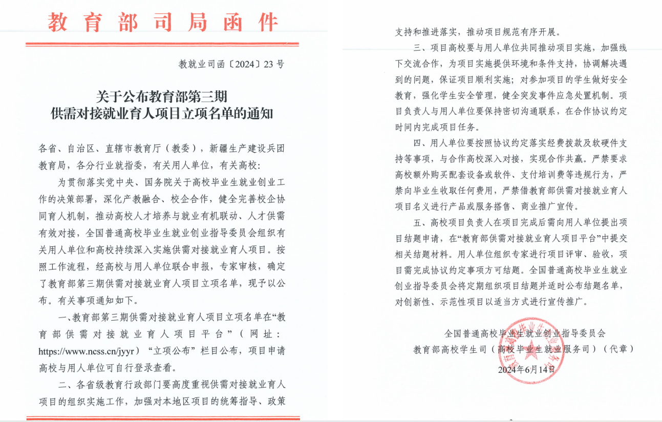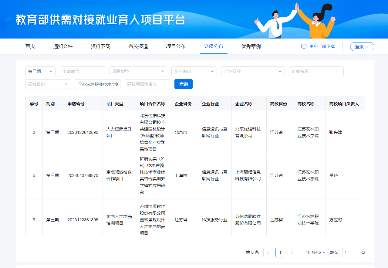 近日,教育部公布了第三期供需对接就业育人项目立项名单,伟德官网与全国园林行业产教融合共同体内上下游企业申报的3个项目成功入选,这是共同体多方汇聚产教资源,承担教育部项目联合开展人才培养的重要成果。