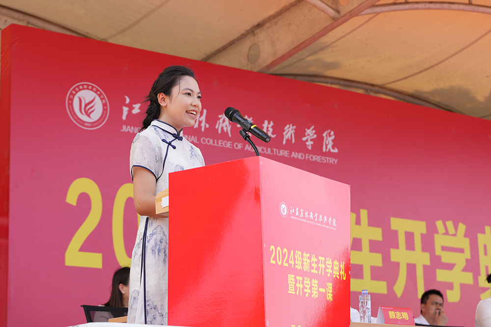 党委副书记、院长潘永圣代表学院对2024级新同学表示热烈欢迎,向广大教师员工致以节日的问候和诚挚的祝福,并为新同学上了开学“第一课”。他从学院百年办学历史介绍起,围绕“到处皆诗境,随时有物华”的学习、生活环境,“甘为孺子育英才,克勤尽力细心裁”的育人团队、平台和“纸上得来终觉浅,绝知此事要躬行”的实习实践三个方面带领同学们全面了解了学习平台、学习环境、人才培养模式,鼓励同学们向榜样学习,充分利用卓越一流的平台,努力成长为一名有理想有抱负的“新农人”和掌握现代技能的“新农匠”。