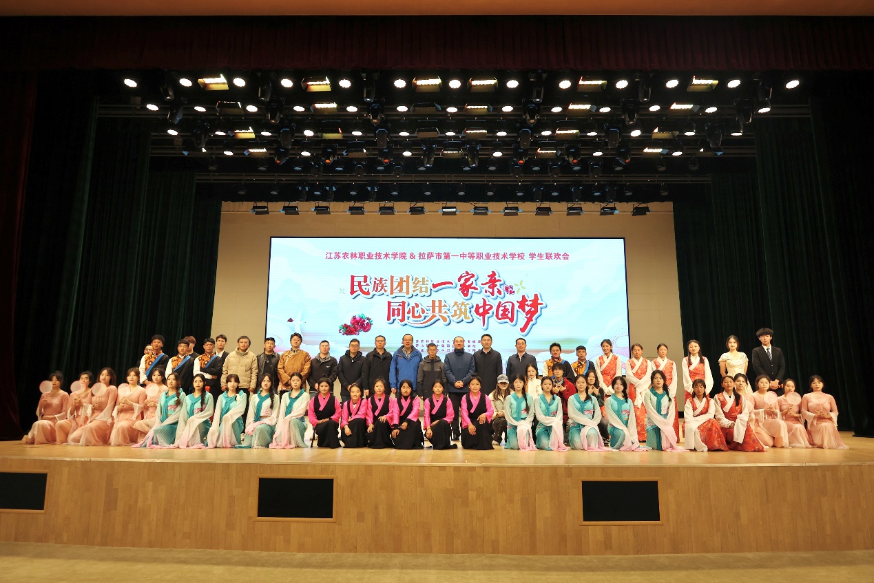 学院大学生艺术团与拉萨市第一中等职业技术学校的学生联合举行了“民族团结一家亲同心共筑中国梦”为主题的学生联欢会。