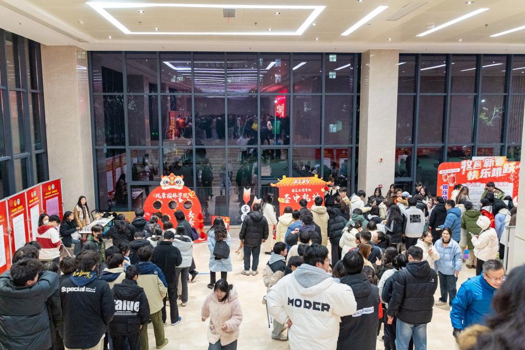 联欢会结束后,元旦游艺宫正式开始,各二级学院团委准备的游戏精彩纷呈,同学们热情参与,食堂里的腊八粥又一次给师生带来了新年的温暖。看演出、玩游戏、喝腊八粥,全校师生一起分享新年的欢乐。