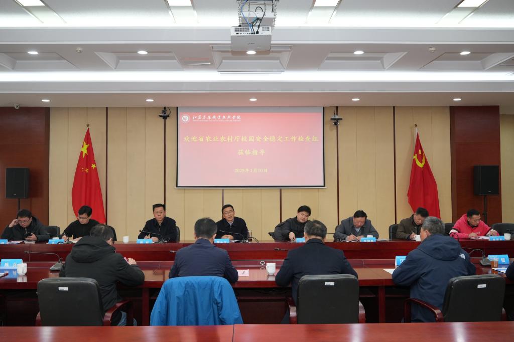 1月10日,全省高校安全检查组莅临伟德官网,开展常态化安全工作检查。省农业农村厅科教处二级调研员夏小江任检查组组长,学院党委副书记、院长潘永圣,党委委员、副院长毕德全出席汇报会,并陪同检查组进行了实地检查。