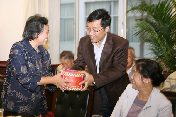 九九重阳,是我们中华民族尊老、敬老、爱老、助老的传统节日。10月7日下午,学院组宣人事处和工会举办了“庆祝2008重阳节暨老同志祝寿会”。院党委书记朱洪生,党委副书记、院长黄焱,党委副书记、纪委书记王润贤与五十多位离退休老同志一起共话重阳佳节。座谈会由王书记主持,朱书记、黄院长在会上讲话。