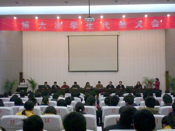 伟德官网第六次学生代表大会于2008年1月9日下午在图书馆报告厅隆重召开,学院党委王润贤副书记、工会朱金裕主席、团委毕德全书记、学生工作处苏小冬处长、曹正副处长、杨宝林科长出席了会议,应邀到会的还有各系分管学生主任和团总支书记。