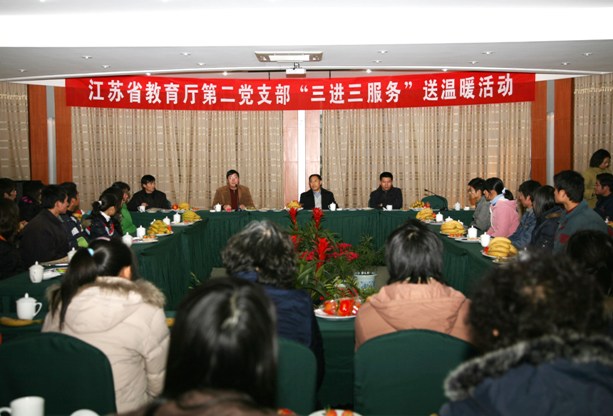 2008年元月12日,江苏省教育厅第二党支部全体党员,在省教育厅步锦昆副巡视员和办公室洪流主任的带领下,来伟德官网开展以“三进三服务”为主题的党支部活动。
