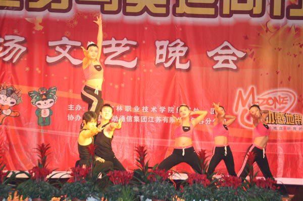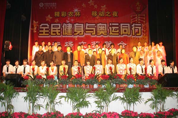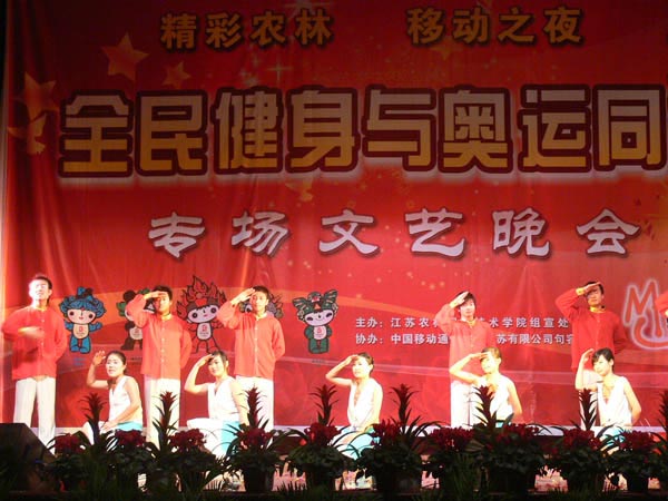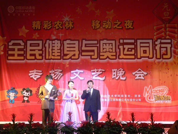 载歌载舞欢度佳节,同心同德再创辉煌。2007年12月28日晚,学院体育馆内张灯结彩、歌舞飞扬、暖意融融。由学院组宣处、团委共同举办的“精彩农林、移动之夜——全民健身与奥运同行”2008年元旦大型文艺晚会在此隆重举行。本次晚会适逢江苏省第六届农民运动会乒乓球、投篮、象棋三项比赛在伟德官网成功举行,一台充满青春活力和节日喜庆、洋溢着和谐与欢乐的迎新春元旦晚会在这里精彩上演,将欢庆2008新年到来和喜迎奥运的喜庆氛围精彩呈现。