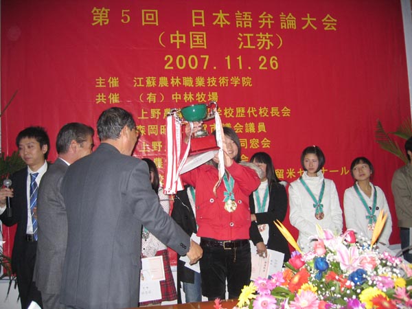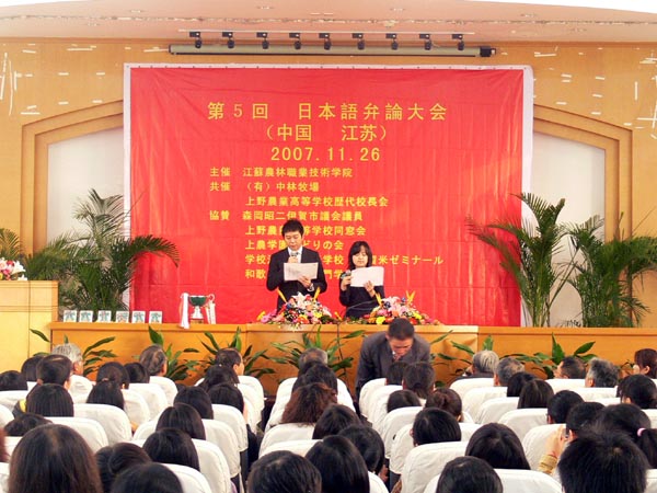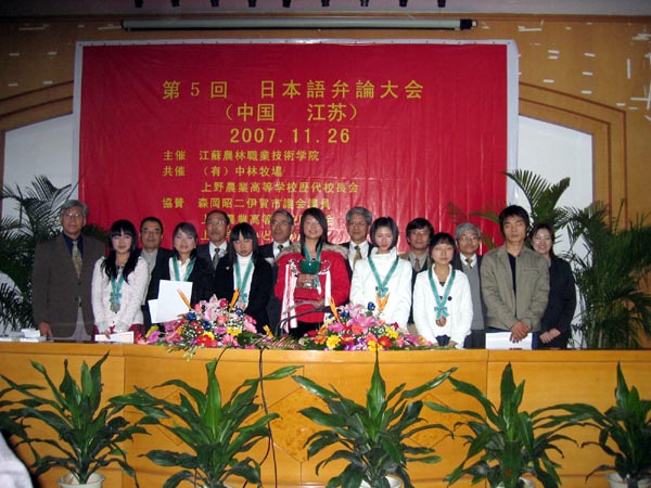 11月26日,由学院承办,日本中林牧场、上野农校校长会协办,日本久留米综合学校、和歌山外国语学校等企业、团体赞助的“第五届日语演讲比赛”在学院举行。学院日语专业的十五位同学进行了紧张激烈的角逐,由日本代表团组成的评委经过认真的评审,黄水璐同学获一等奖,有六位同学分获二、三等奖,并为获奖者颁发了奖状和奖金。