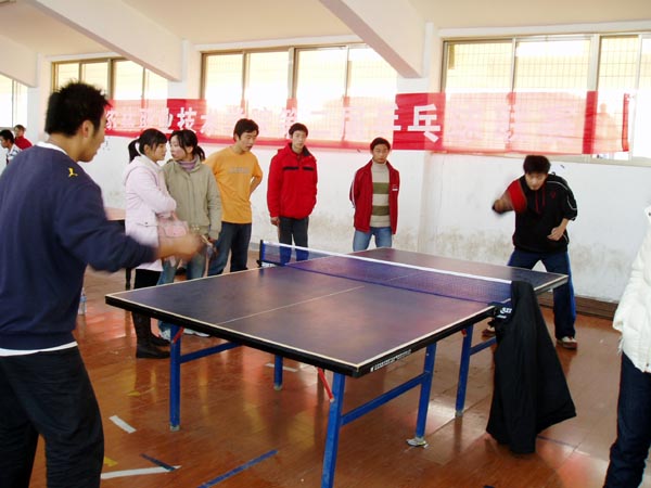 2007年12月8日—12月9日BV伟德官方网站第二届乒乓球联赛日前落下帷幕,本次比赛共有9个代表队参赛,经过紧张角逐,最后江宁校区、经济贸易系、风景园林系分获团体赛的冠、亚、季军,王昊、任斌、李凯分获男子单打的冠、亚、季军,董丹、刘惠、吴芳芳分获女子单打的冠、亚、季军。