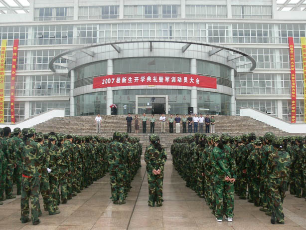 上午10:00,江宁校区举行2007级新生开学典礼暨军训动员大会。尹汉学院长、王小林副司令、机电工程系刘永华副主任等分别在大会上作了发言。