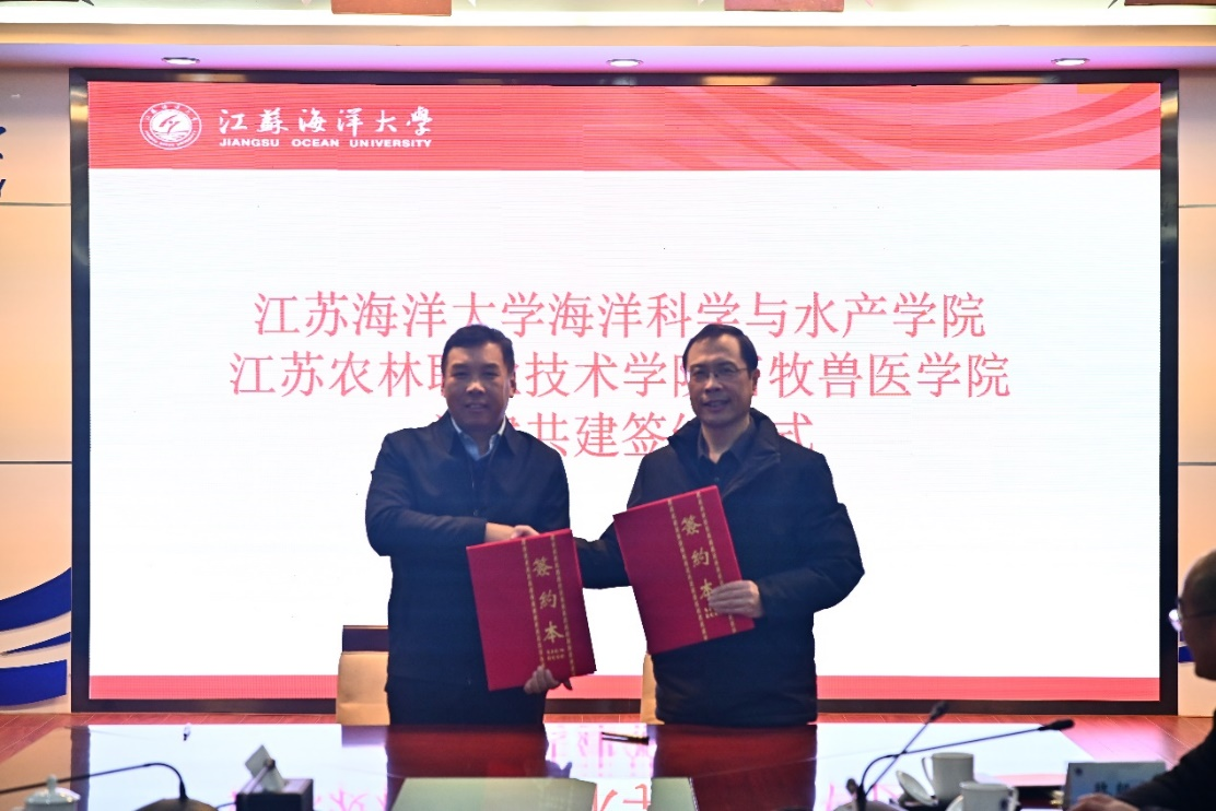 2月25日,伟德官网畜牧兽医学院党总支和江苏海洋大学海洋科学与水产学院党委党建共建签约仪式在江苏海洋大学举行。江苏海洋大学副校长张元良,伟德官网党委委员、副院长王瑾,江苏海洋大学海洋科学与水产学院党政班子成员参加签约仪式,海洋科学与水产学院党委书记黄金虎主持签约仪式。