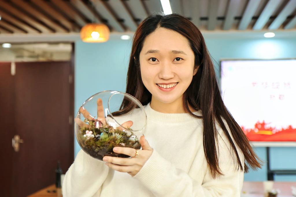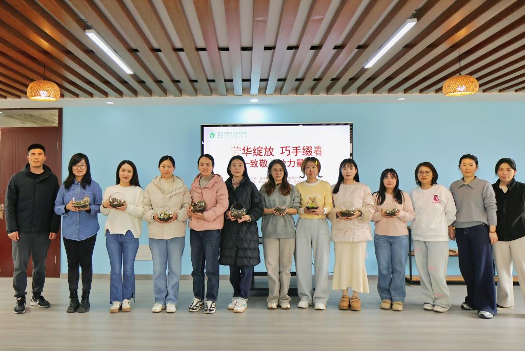 活动以“微景观搭建”开启,校区新农人文创园椿野店铺负责人现场讲解微景观的设计理念与制作技巧,细致指导教职工们将自然之趣浓缩于方寸之间,巧运绿植、木饰诸元,打造出一件件充满诗意的“掌上花园”。一盆盆微景观作品或清新雅致,或童趣盎然,映衬着老师们专注投入的笑颜,展现了对美好生活的热爱与追求。