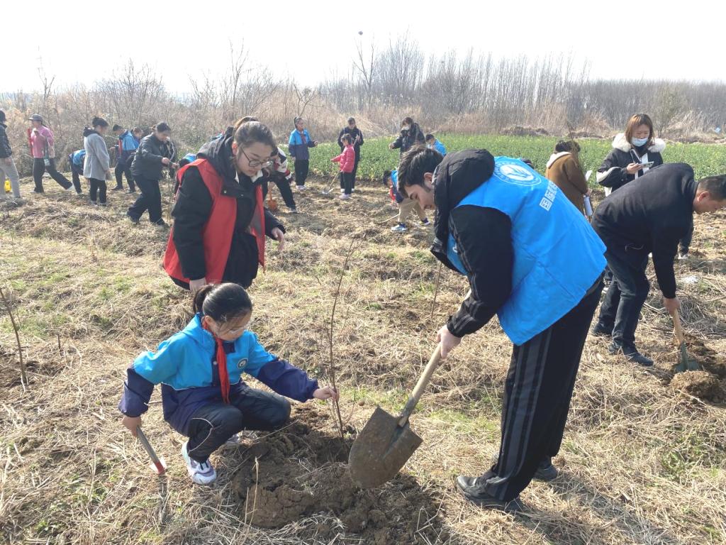 植树过程中,大家相互配合,挥锹铲土、扶树填土、培土浇水,活动现场热火朝天。志愿者与孩子们一起挖坑、填土、浇水,为春天播种下了美好的友谊与希望。和风煦日,春日暖阳,大家的辛勤劳动,为黄金坝添上了一道亮丽的风景线。