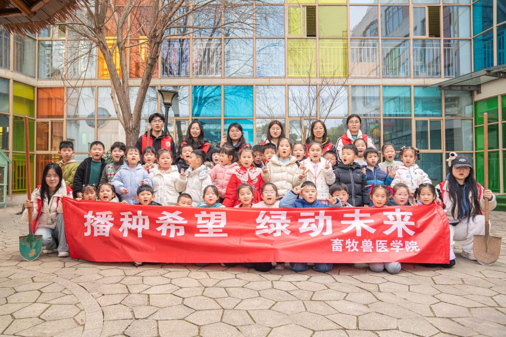 3月10日,畜牧兽医学院的学生志愿者们走进句容市文昌路幼儿园,与小朋友们共同开展了一场别开生面的植树节志愿活动。此次活动以“播种希望绿动未来”为主题,旨在通过实践教育,将环保理念传递下去,同时让大学生在实践中践行社会责任。