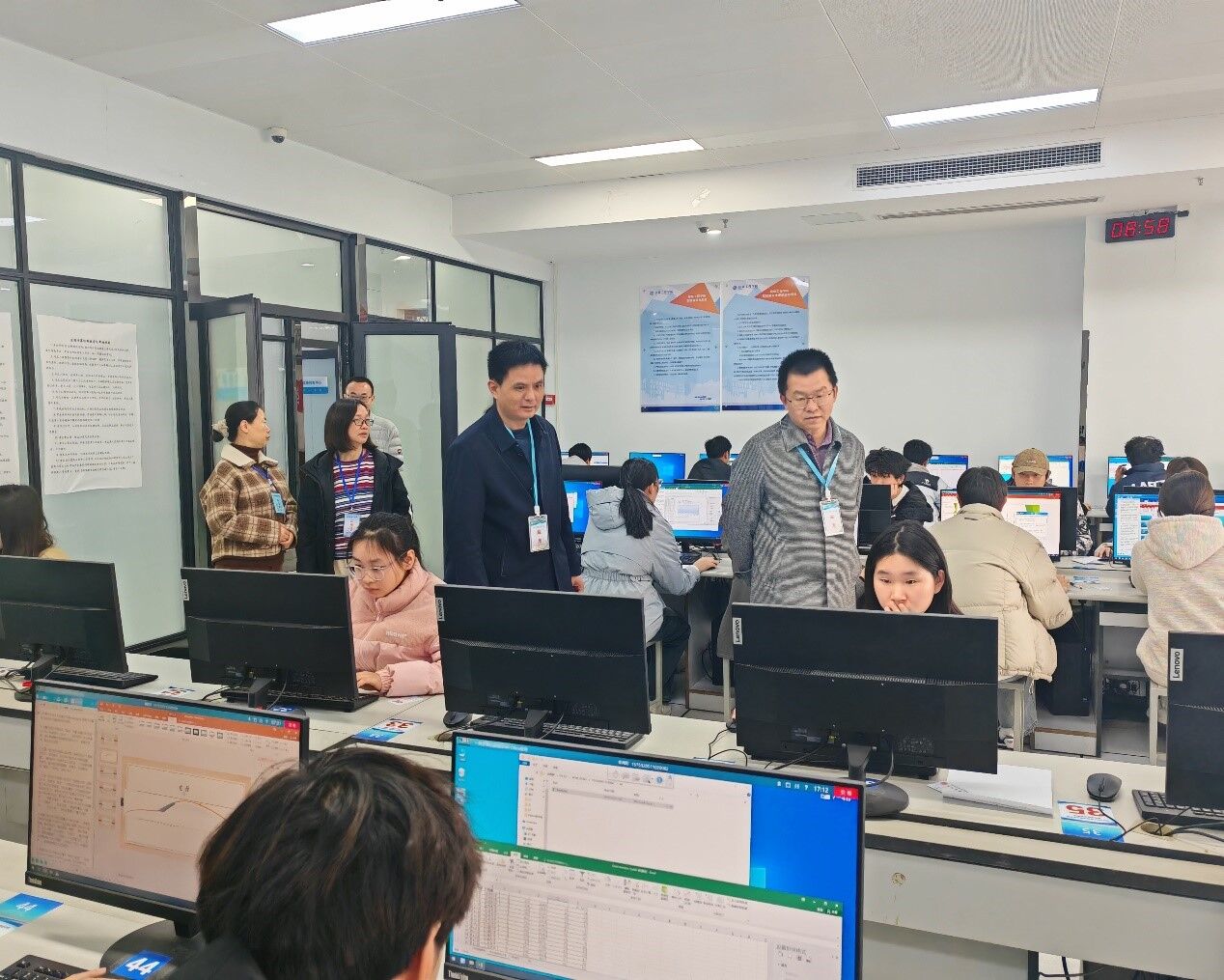 学院高度重视全国计算机等级考试工作,成立了以院长为组长,分管副院长为副组长的考务工作领导小组,同时下设考务工作组等多个工作组,全面负责考试实施工作。信息工程学院制定详细的考试实施方案,召开考务培训会,对考务人员、机务人员和监考教师进行了系统培训,明确监考职责、详细讲解考试规定与工作要求。考试期间,校领导、教务处、茅山校区、信息工程学院、句容市教育考试中心的相关领导深入考场进行巡视督导、检查指导。