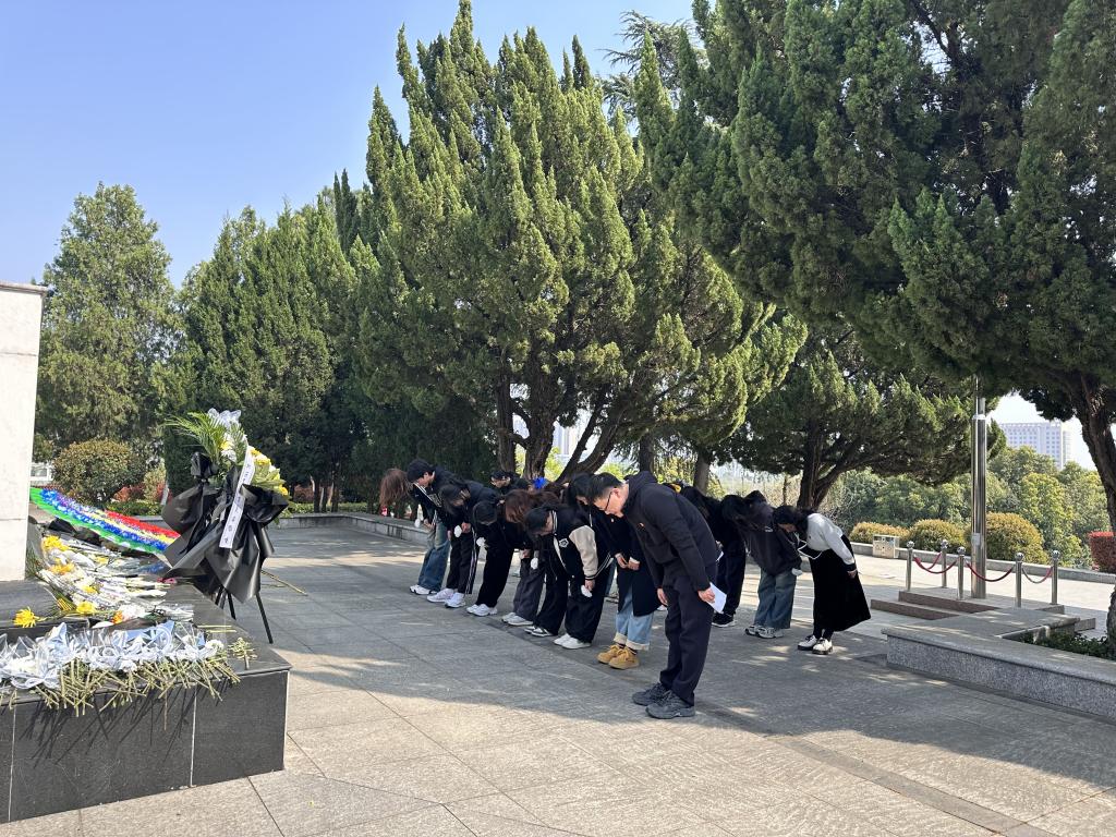 在庄严肃穆的烈士纪念碑前,学生党支部书记许俊齐以“红色传承,清明追思”为题现场讲授微党课,“每一座墓碑都是一段不朽的历史,我们青年师生要铭记先烈遗志,做新时代的奋斗者。”随后,师生们在烈士墓前默哀、献花,擦拭烈士墓碑,向革命先烈致以最崇高的敬意,表达最深切的怀念。