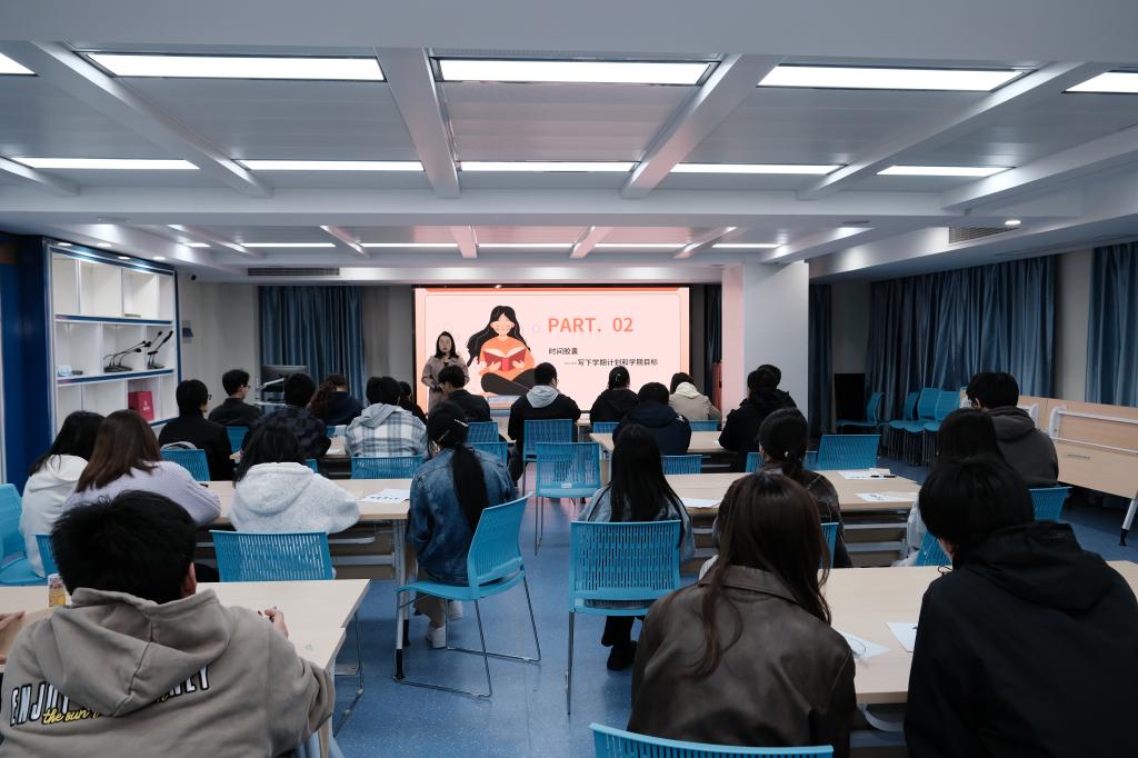 第一堂课分五个阶段,层层推进,提升“双困生”的内驱力。在课堂上,学长分享自己的成长经历和学习经验,指导他们将“本学期的目标+关键行动步骤”制作成“时间胶囊”,由一对一的“时间管理互助伙伴”进行互助监督。使用《时间规划本》定制“我的24小时”,成立线上互助小组,通过APP进行自律打卡,激励学生自我监督、相互鼓励,引导他们在日常学习生活中养成自我管理的好习惯。