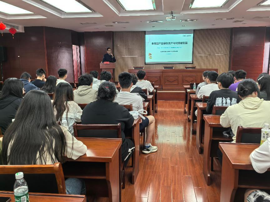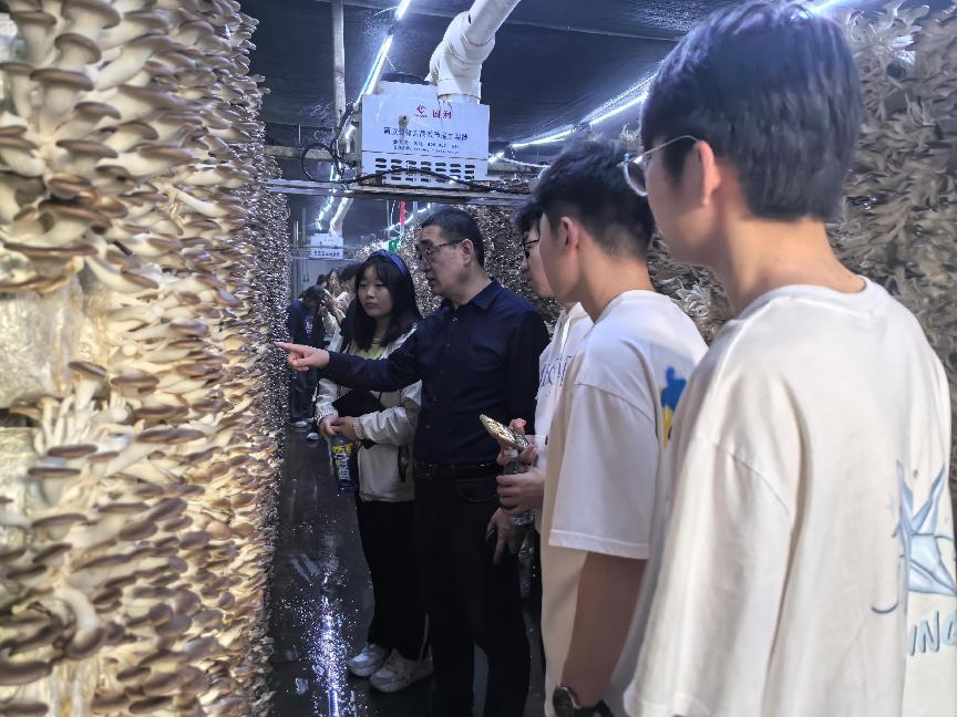 师生走进数字化控温菇房,观摩液体菌种接种、环境智能调控等核心技术操作;在包装车间了解食用菌深加工工艺流程,直观感受物联网技术对传统农业的升级改造。企业负责人以“食用菌产业绿色生产与可持续发展”为题,为师生们现场讲解了食用菌产业在粮食安全与生态农业中的独特价值。