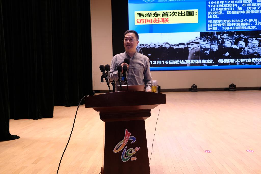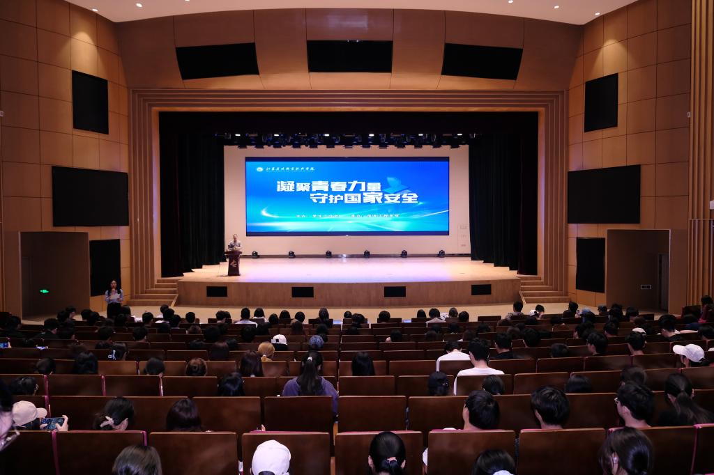 在第十个全民国家安全教育日来临之际,4月10日,由学生工作处主办、信息工程学院承办的“凝聚青春力量、守护国家安全”全民国家安全教育日主题讲座在大学生艺术中心举行,讲座特邀江苏省普通高校军事课教学指导委员会副秘书长、河海大学教授王建中带来主题为《新中国76年的国防》的精彩讲座,400余名师生参加。