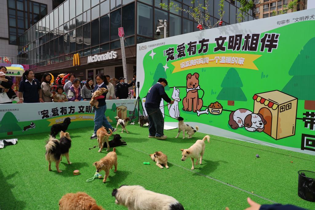 4月12日下午,句容市文明办、农业农村局、华阳街道及多家宠物机构联合畜牧兽医学院,共同举办首届流浪犬爱心领养日活动。