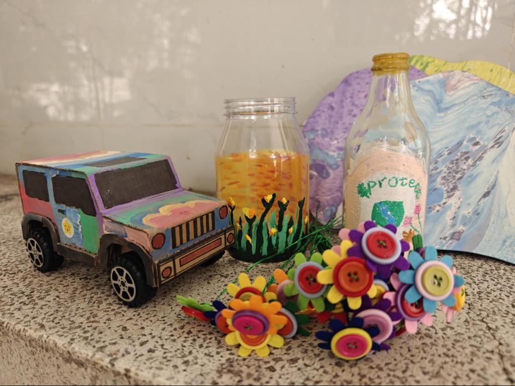 活动现场气氛热烈,同学们在志愿者的指导下,将日常废弃物转化为实用或装饰性物品,切身感受“变废为宝”的环保乐趣。