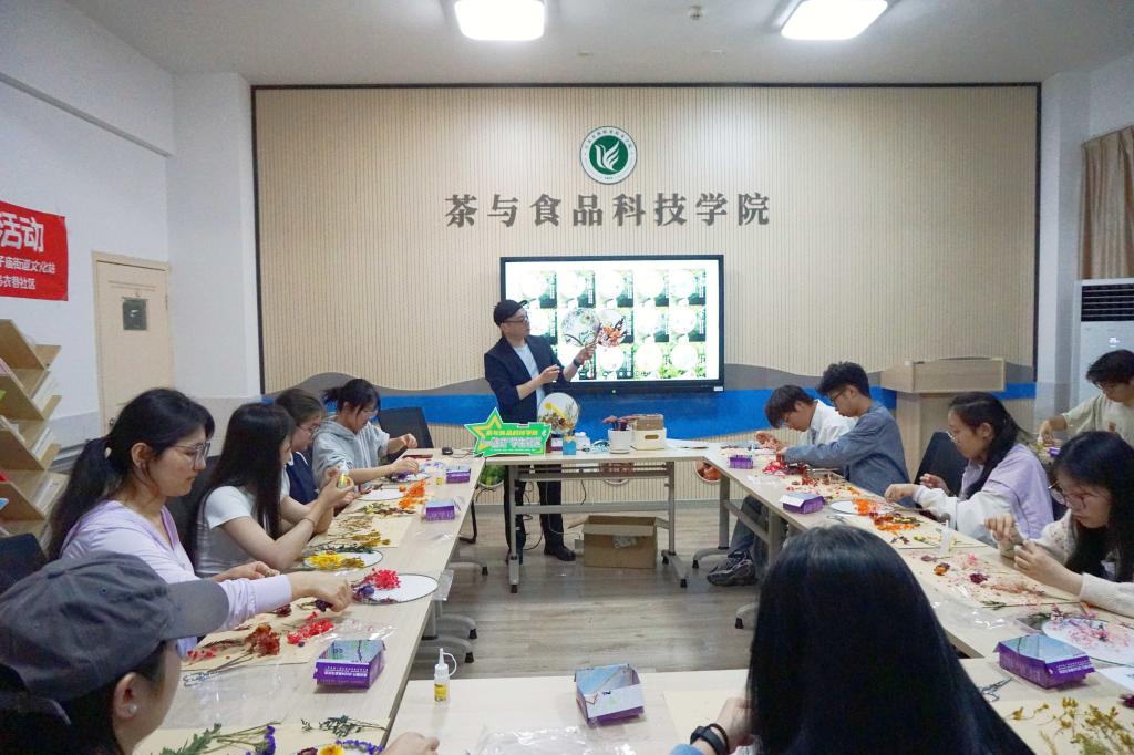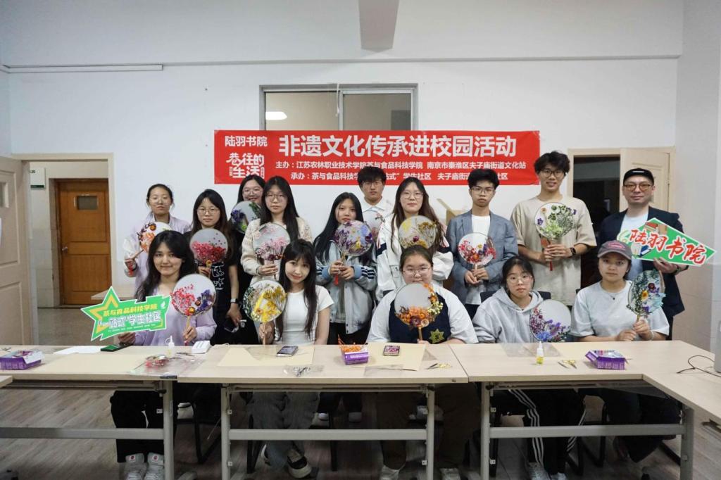 4月27日,茶与食品科技学院团委、“一站式”学生社区联合夫子庙街道乌衣巷社区,在综合楼317活动室举办“迎五四·古韵传情”压花扇手作沙龙,活动通过“非遗讲堂+实践创作”模式,组织青年学子体验传统技艺,厚植爱国主义情怀。