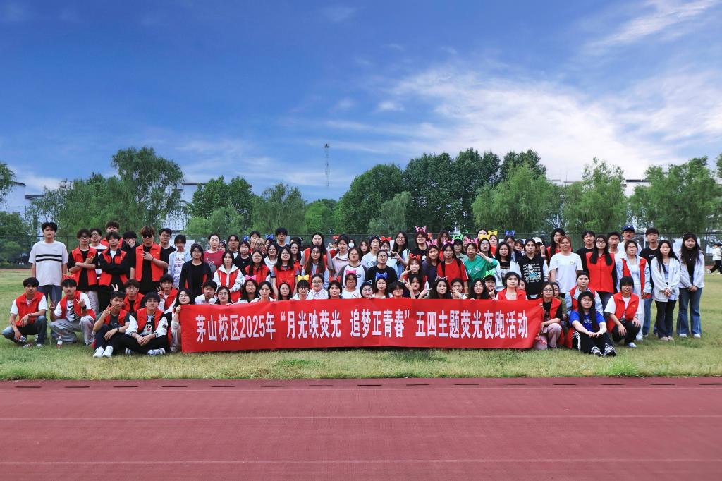 4月27日,茅山校区举办“月光映荧光逐梦正青春”五四主题荧光夜跑活动。200名学子身着荧光装备,在跑道上挥洒汗水,沿途设置“五四知识我知道”“中华小曲库”等四个主题关卡,将体育竞技与爱国教育深度融合。这项活动是“阳光四点半体育课堂”的特色实践,为青春征程注入信仰动能。