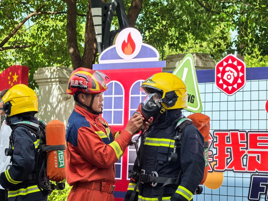 活动伊始,师生们沿着“青年学习社消防专线”展开研学,消防指战员结合微型消防站设施和VR模拟系统,通过“理论讲解+情景模拟”的方式,详细讲授初期火灾扑救、火场逃生自救等实用技能。在烟雾逃生体验区,同学们在教官指导下完成疏散演练,同时通过模拟操作直观认识违规用电的危害。在试穿消防装备后有的同学感慨道:“穿戴战斗服比想象中沉重得多,真切体会到消防员的艰辛。” 活动现场,华阳消防救援站政治指导员李伟结合近期典型案例,以“校园安全风险识别与防范”为题作专题宣讲,通过视频演示、互动问答等形式,深入剖析实验室安全、宿舍用电等常见隐患的预防要点。