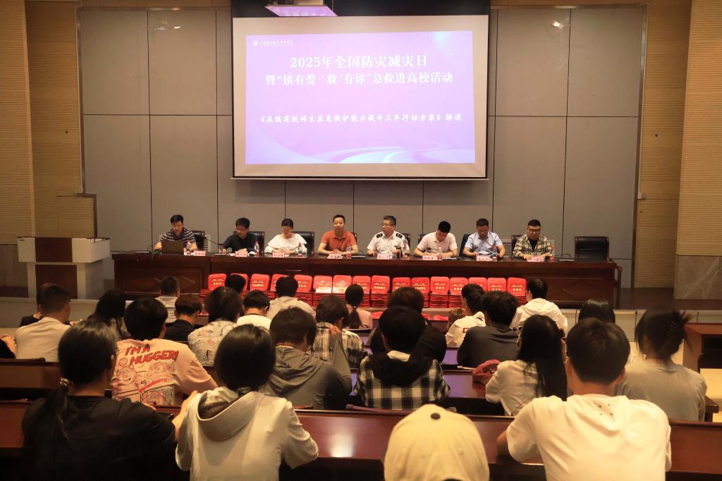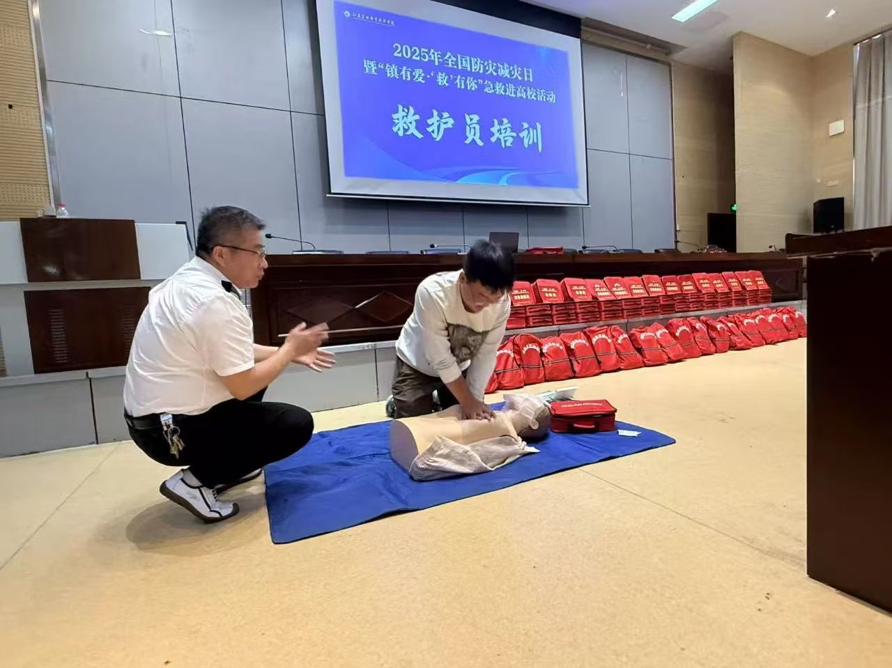 2025年5月12日是第17个全国防灾减灾日,今年的主题是“人人讲安全、个个会应急——排查身边灾害隐患”。学院与句容市急救站携手举办了2025年全国防灾减灾日暨“镇有爱・‘救’有你 ”急救进高校活动,后勤基建处、学生工作处、团委、体育部、茅山校区管委会和句容市急救站相关负责同志和100余名师生代表参加此次活动。