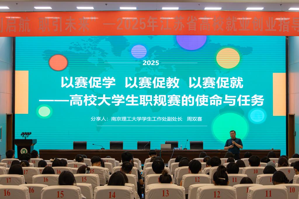 5月14日下午,“规划启航 职引未来”——2025年江苏省高校就业创业指导公益巡讲活动在我校图书馆报告厅举行。本次活动主讲人为中国国际大学生创新大赛和全国大学生职业生涯规划大赛专家库成员、江苏省就业创业培训专项导师、BCC全球生涯教练和GCDF职业生涯规划师,南京理工大学学生工作处副处长周双喜。讲座主题为“以赛促教,以赛促学,以赛促就——高校大学生职业生涯规划大赛的使命任务”。
