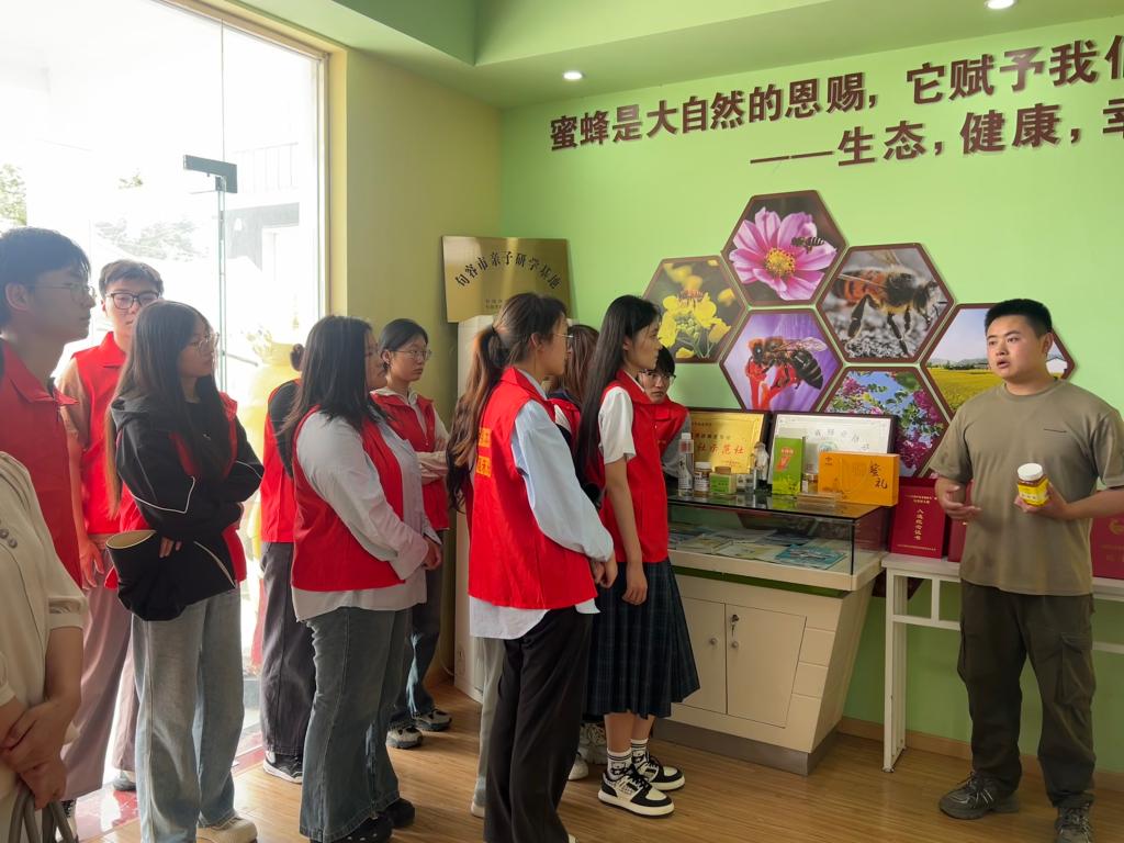 “创业最难的是打破固有思维。”舒锦博向新农创学子们介绍道,企业初创时遭遇传统销售渠道受阻,在政府和政策的支持下,他果断转向电商赛道,同时开发出“线上销售+线下体验”的模式。从创业初期的困局突围,到如今形成电商销售、技术服务和文旅科普体验的完整产业链。目前,舒锦博的核心业务涵盖蜂产品电商运营、蜂农养殖技术指导、生态旅游及文化科普三大板块。通过打造沉浸式科普馆和体验式田间课堂,将传统农业延伸至工业加工和文旅服务领域,实现三产深度融合。