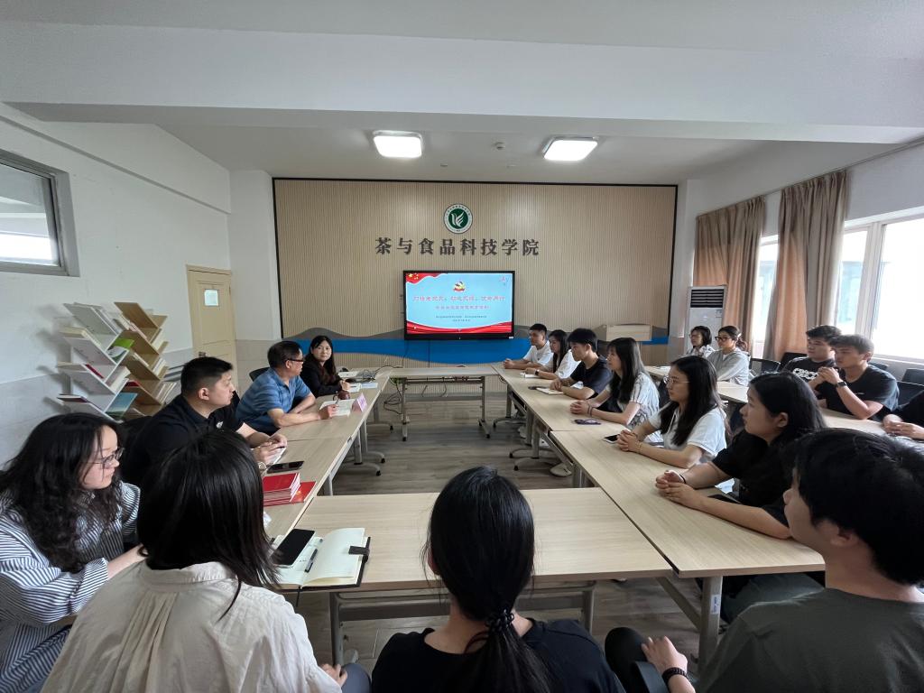 2025年5月26日下午,茶与食品科技学院学生党支部联合关工委以“对话老党员:初心永续,使命同行”为主题,组织开展了2025届毕业生党员教育活动。学院关工委常务副主任江德明、茶与食品科技学院党总支副书记嵇怡、学生党支部教师党员和毕业生党员齐聚一堂,通过座谈交流、重温誓言、寄语传承等环节,为即将踏上人生新征程的毕业生党员同志上了一堂生动的“特别党课”。