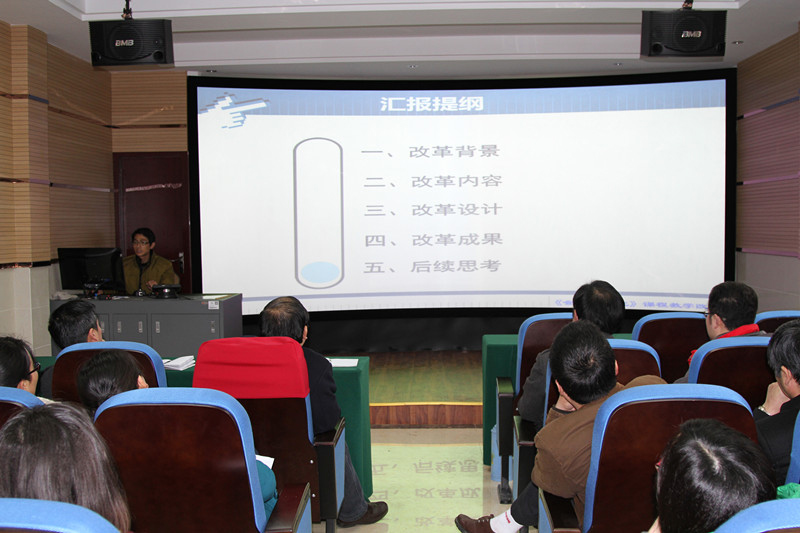 会上,各教研室推选出2-3名教师代表进行教学改革成果汇报,主要从教学改革目标、教学改革内容、教学改革成果、存在问题这几个方面进行阐述。根据汇报内容,各位老师展开了热烈讨论,分享经验,提出建议。