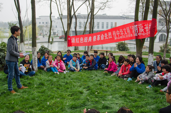 当天,茅山校区分团委学生会联合春城中心小学隆重举行“诵红色经典 祭革命先烈 传中华文明”清明读书会活动。大学生向小学生介绍了清明节的由来和“红色”的意义,带着他们一起诵读《清明》,为他们表演精心准备的朗诵《有的人》、《沁园春.雪》,配乐朗诵《雷锋的故事》、《闪闪的红星》等,和他们一起分享革命先烈的英雄事迹,一起在国旗下为革命先烈默哀,一起徒步行走在茶博园,体会春天的芬芳和新绿。接下来,茅山校区分团委将推出文明祭扫、低碳清明主题班会、徒步踏青等多项活动,倡导过更有意义的清明节。