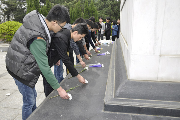 4月1日,农学园艺系、机电工程系分别前往在句容市烈士陵园举行清明祭扫活动。农学园艺系学生党支部联合马扎里社区党小组以“继承民族优良传统,弘扬英雄奉献精神,自觉践行核心价值”为主题开展活动。学生党员和社区党员向革命先烈敬献花圈,集体宣誓表示要继承革命先烈遗志,发扬英雄奉献精神,坚持培育和践行社会主义核心价值观,为实现中华民族伟大复兴的中国梦而不懈奋斗。随后,大家参观了句容市革命纪念馆,了解更多有关烈士的英勇事迹。机电工程系的入党积极分子和学生干部们也为烈士们敬献了花圈。