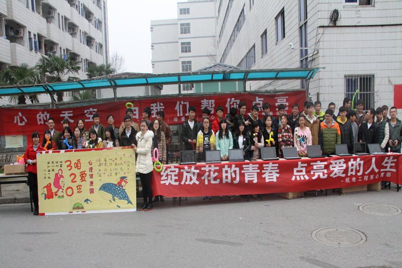 院系学生心育干部向现场师生献上他们精心制作的彩色折花,祝愿他们的生活像这花儿一样五彩缤纷;向他们赠送贴有祝福标语的口罩,希望他们在生活中能够增强抵御不良伤害的能力,使自己活得更加健康。机电工程系心育部的同学也用多彩的泡泡群为大家播放“花之心片”,尤如是“给青春一个微笑,还青春一米阳光”。