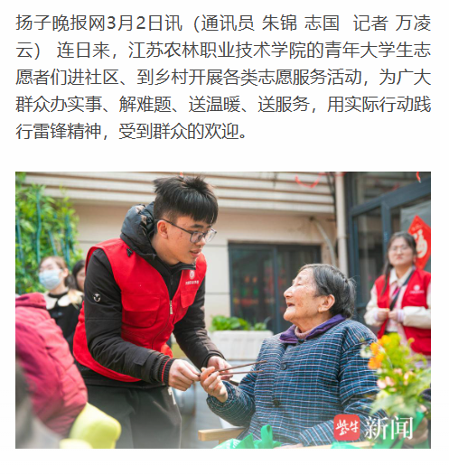 【扬子晚报】进社区 到乡村 青年大学生志愿服务暖人心