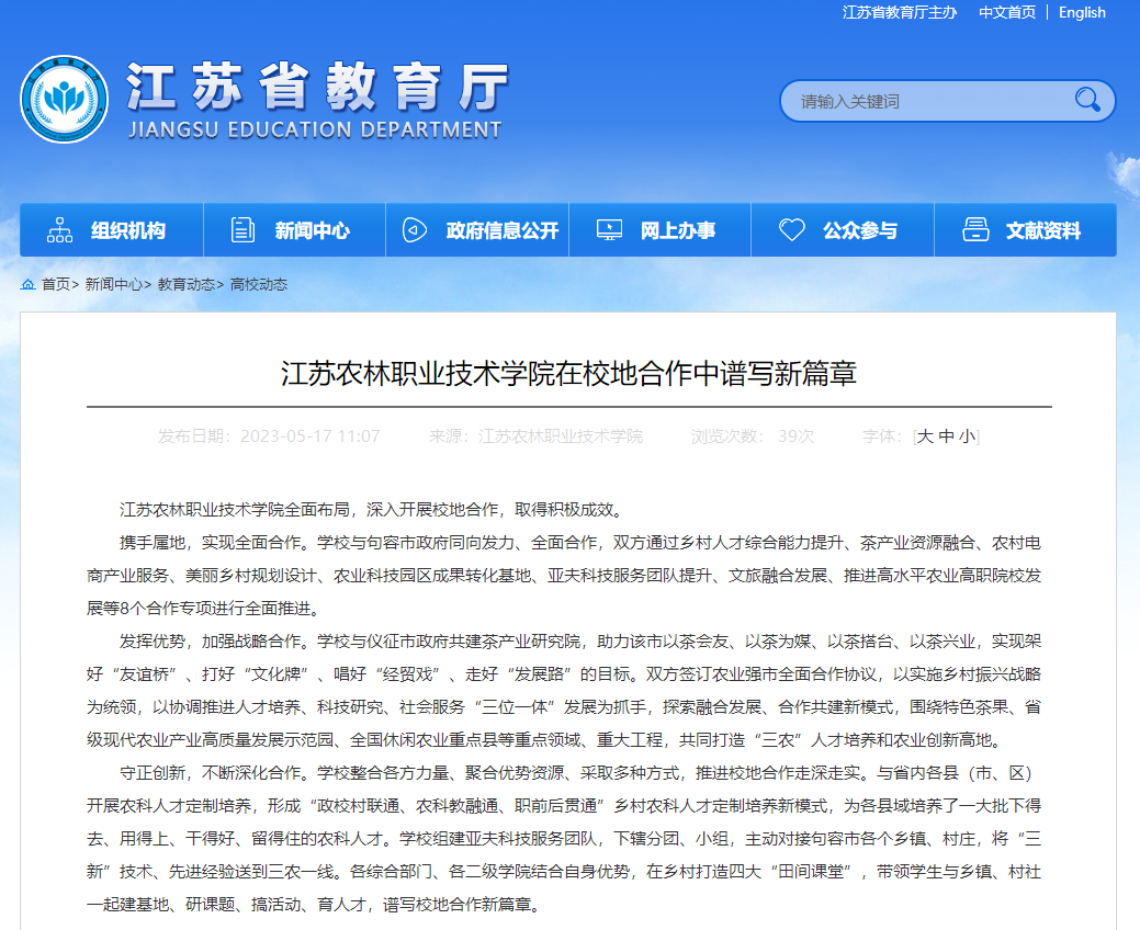 新闻链接:http://jyt.jiangsu.gov.cn/art/2023/5/17/art_57813_10895128.html