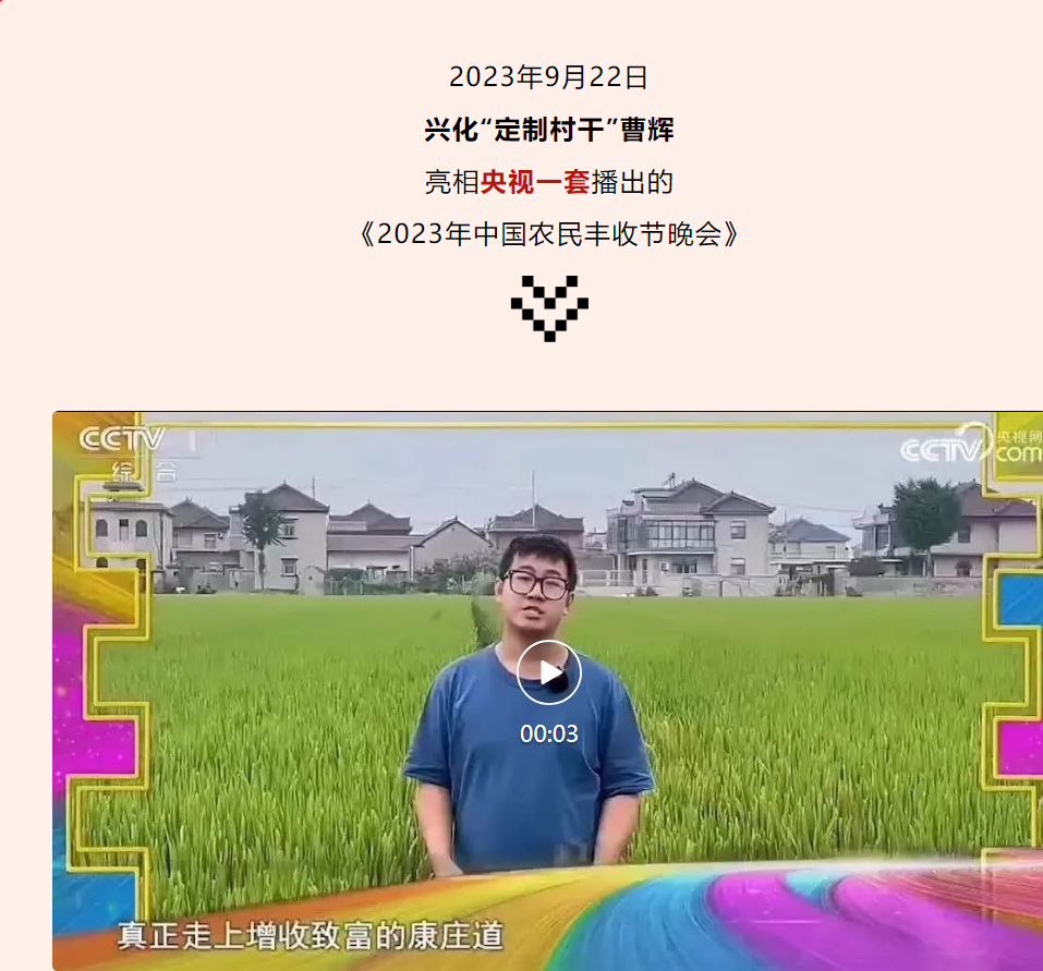 伟德官网优秀毕业生——兴化“定制村干”曹辉亮相央视一套。